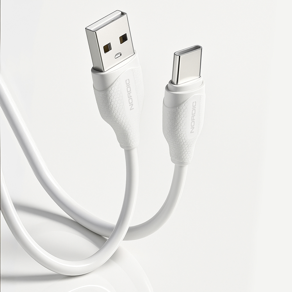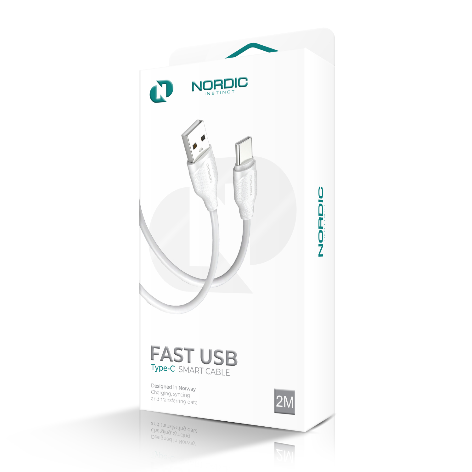 NORDIC Кабел USB-A - Type-C, 2м, 2.1A /бял/