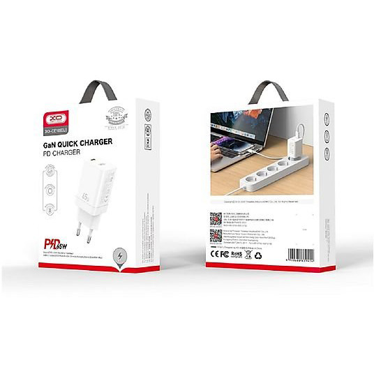 XO 220V 65W, USB-C, EU сертифицирано, бял - CE10
