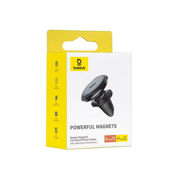 * В комплекта - една метална и една обвита с кожа метални пластини с логото на Baseus, които се залепят към калъфа на телефона , за да може той да се прихваща от магнитния холдер.