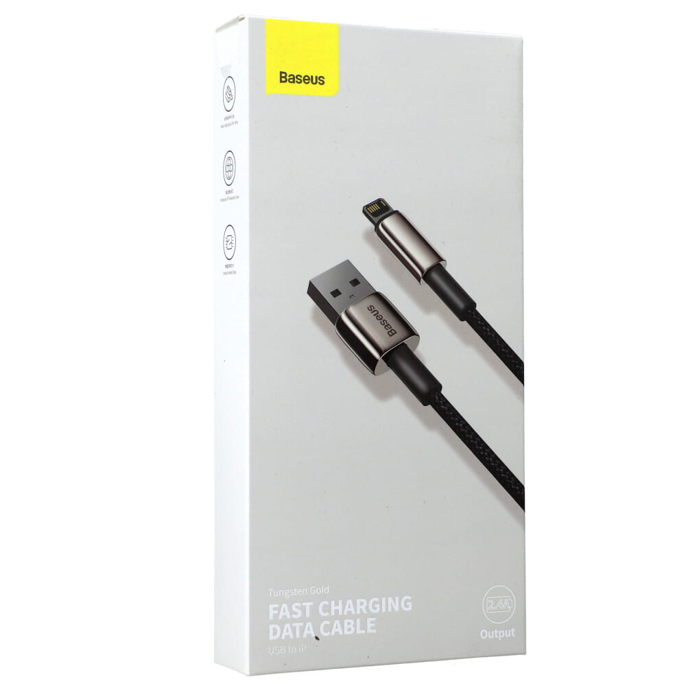 BASEUS Кабел USB-A - Lightning, 2м, 2.4A, Tungsten Gold, CALWJ-A01 /черен/