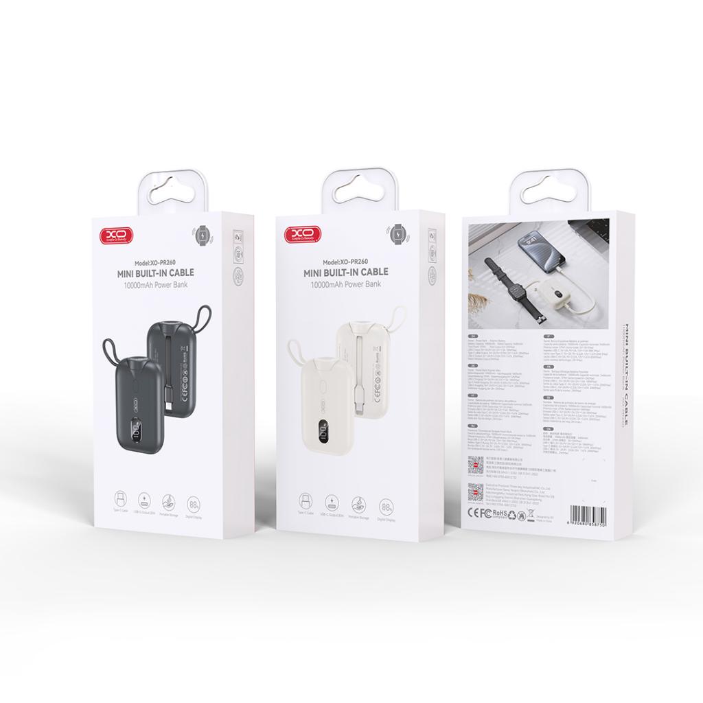 XO Power Bank 10000 mAh 20W, Wireless ЗУ за часовник + вграден кабел: Type-C /черен/ - PR260