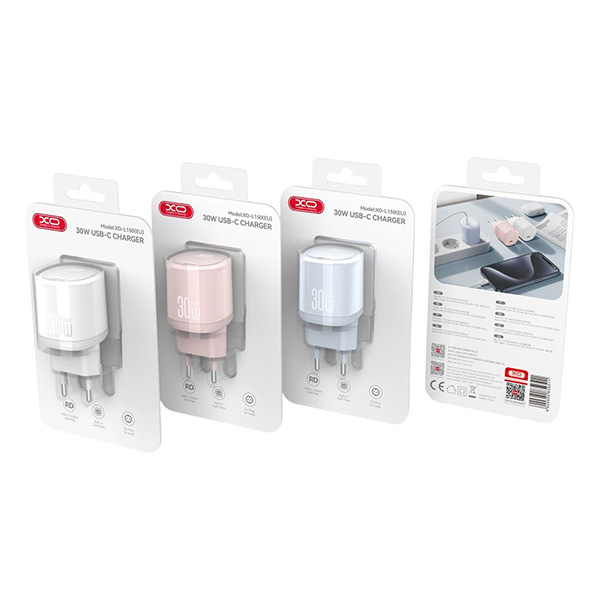 CE сертификат XO 220V 30W, USB-C, син - L150: Свали