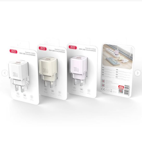 CE сертификат XO 220V 30W, USB-C + USB-A, лилав - L149: Свали