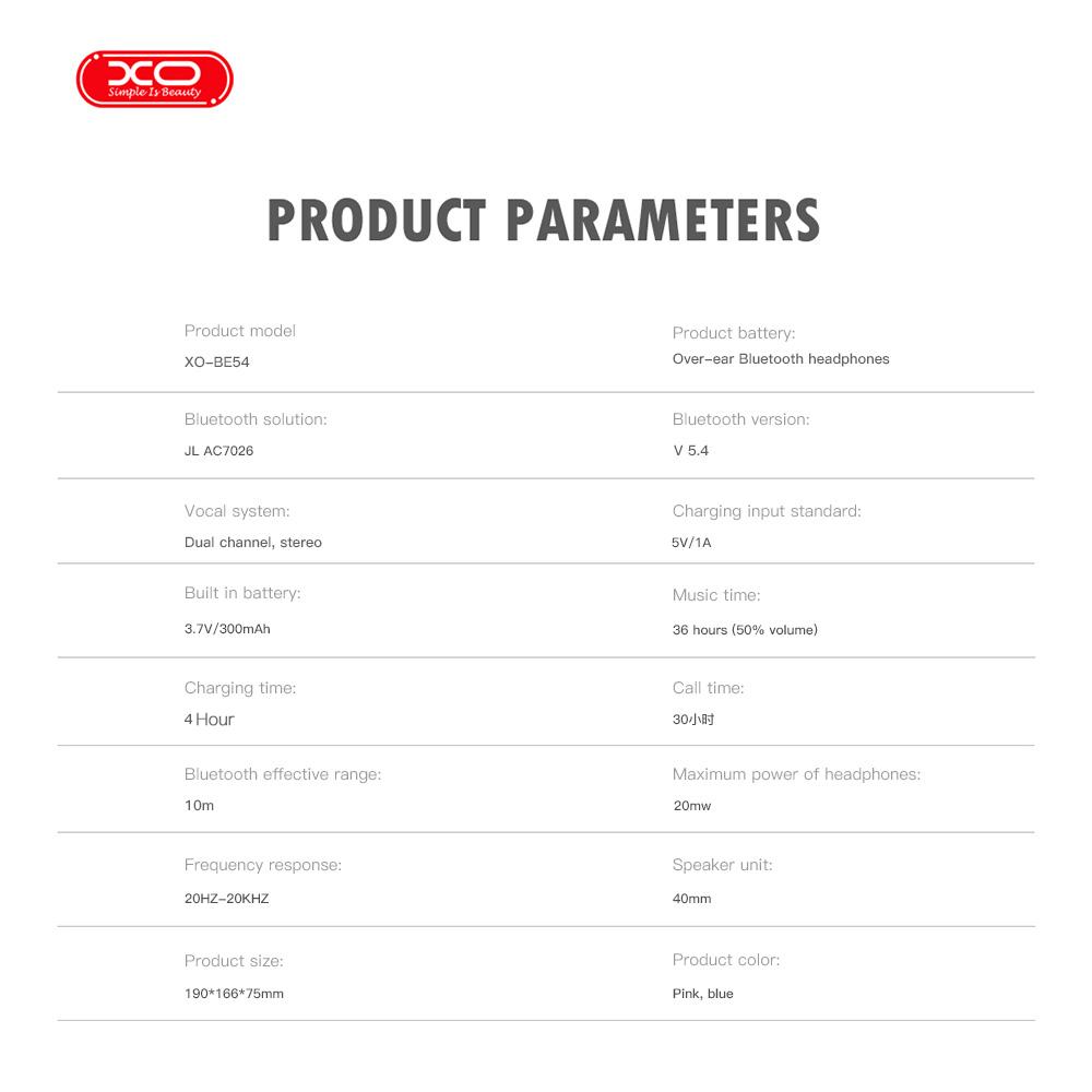 XO HF Bluetooth Overear, Cartoon Kids, розови - BE54