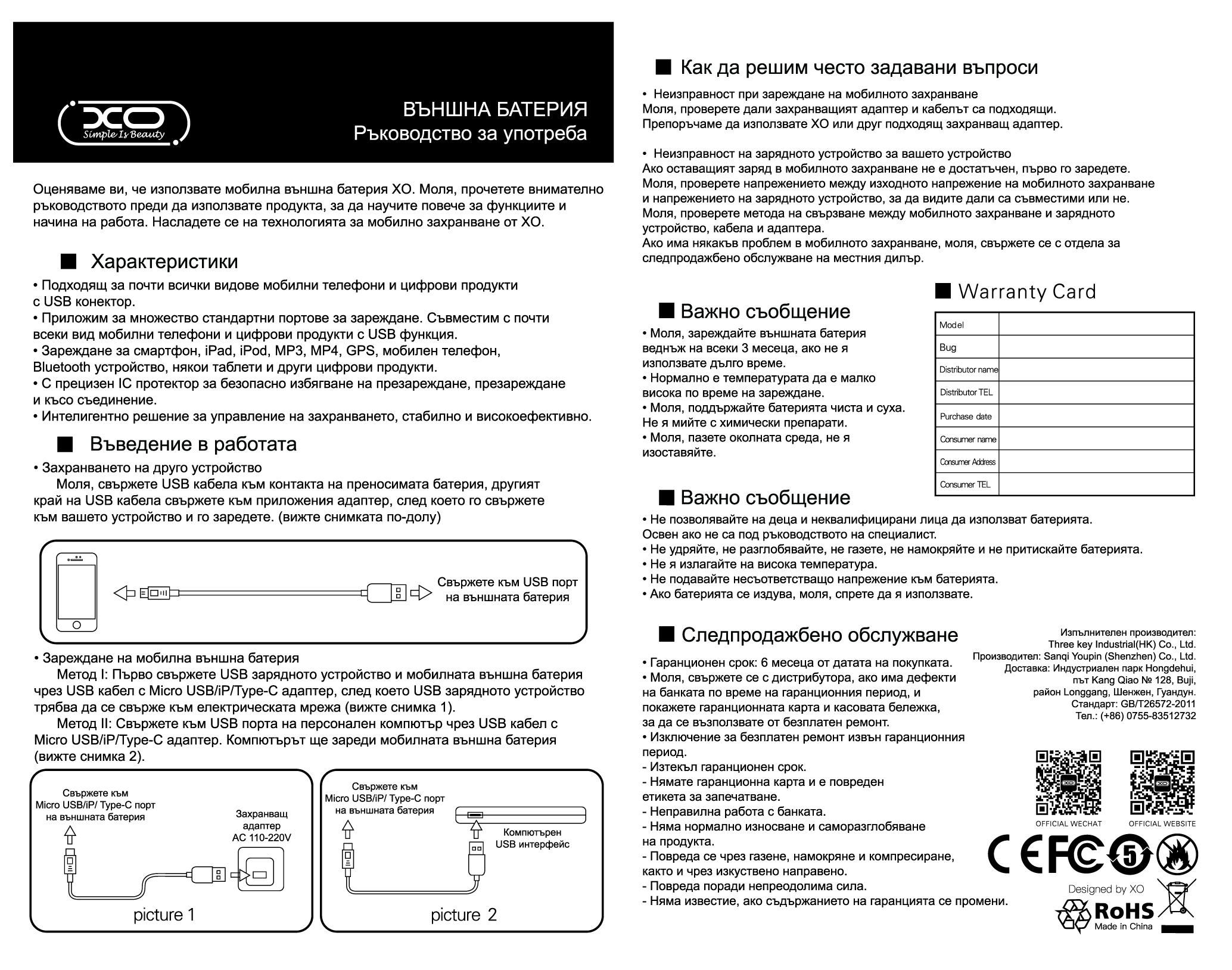 Декларация за съответствие от вносител XO Power Bank 10000 mAh, 33W, черен - PR232: Свали