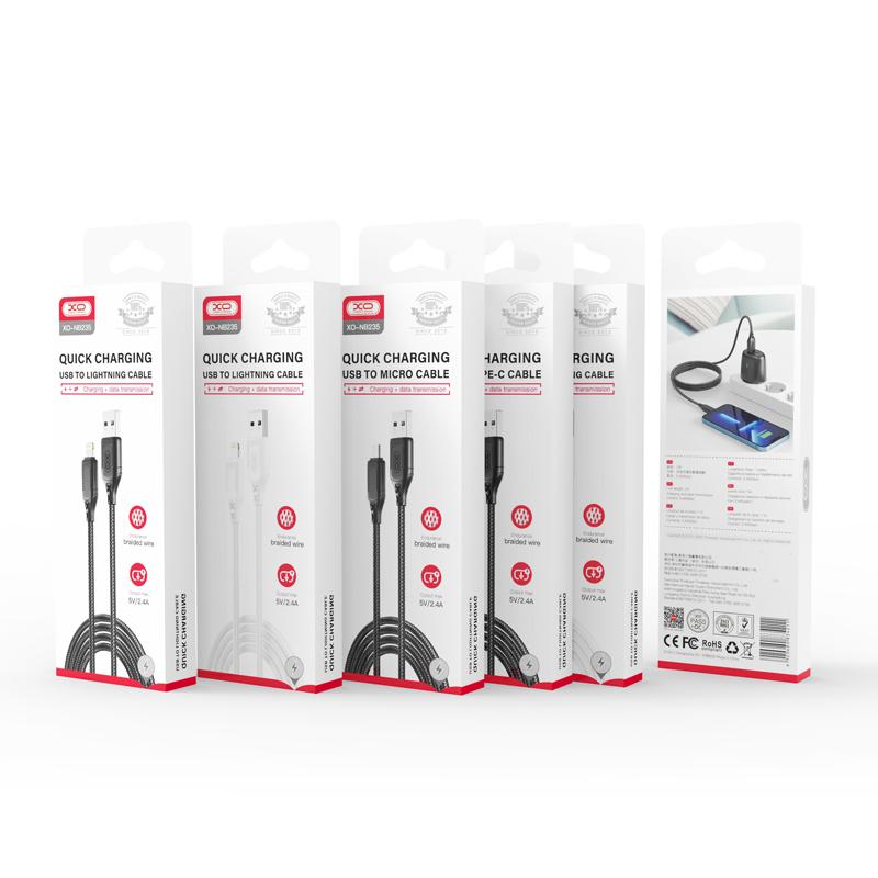 XO Кабел USB-A - Lightning, 1м, 2.4A,черен - NB235