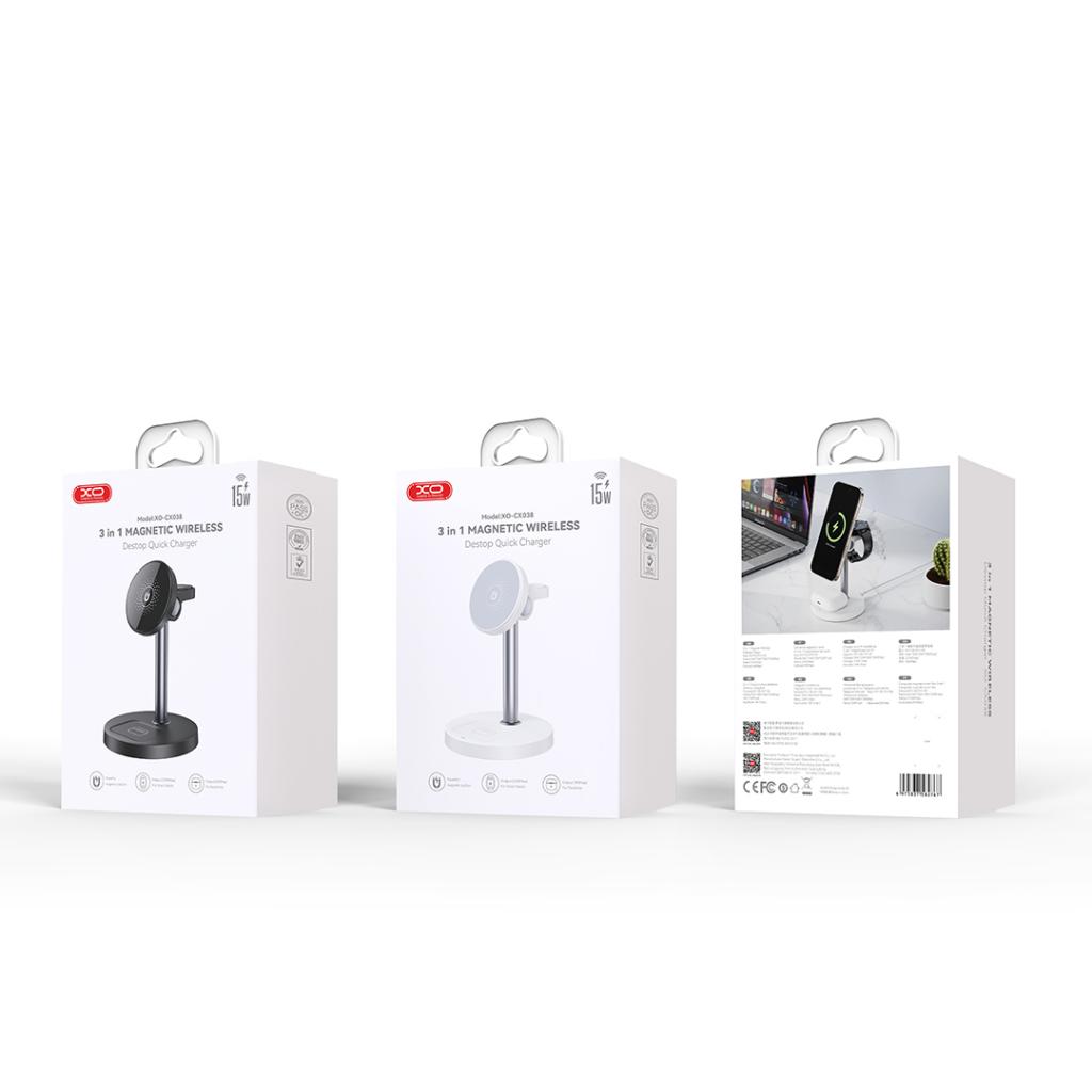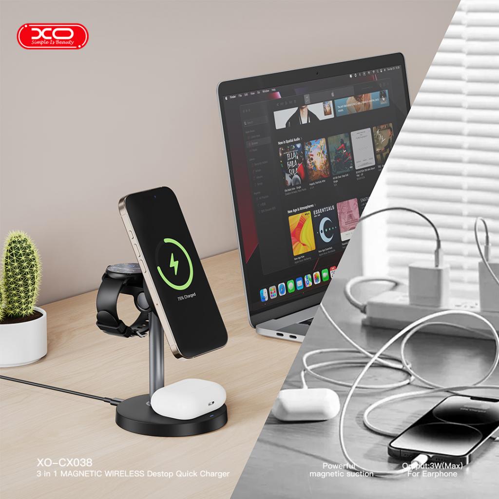 * Безжично зарядно и стойка XO-CX038 - 3 в 1 за телефон, слушалки и смарт часовник.