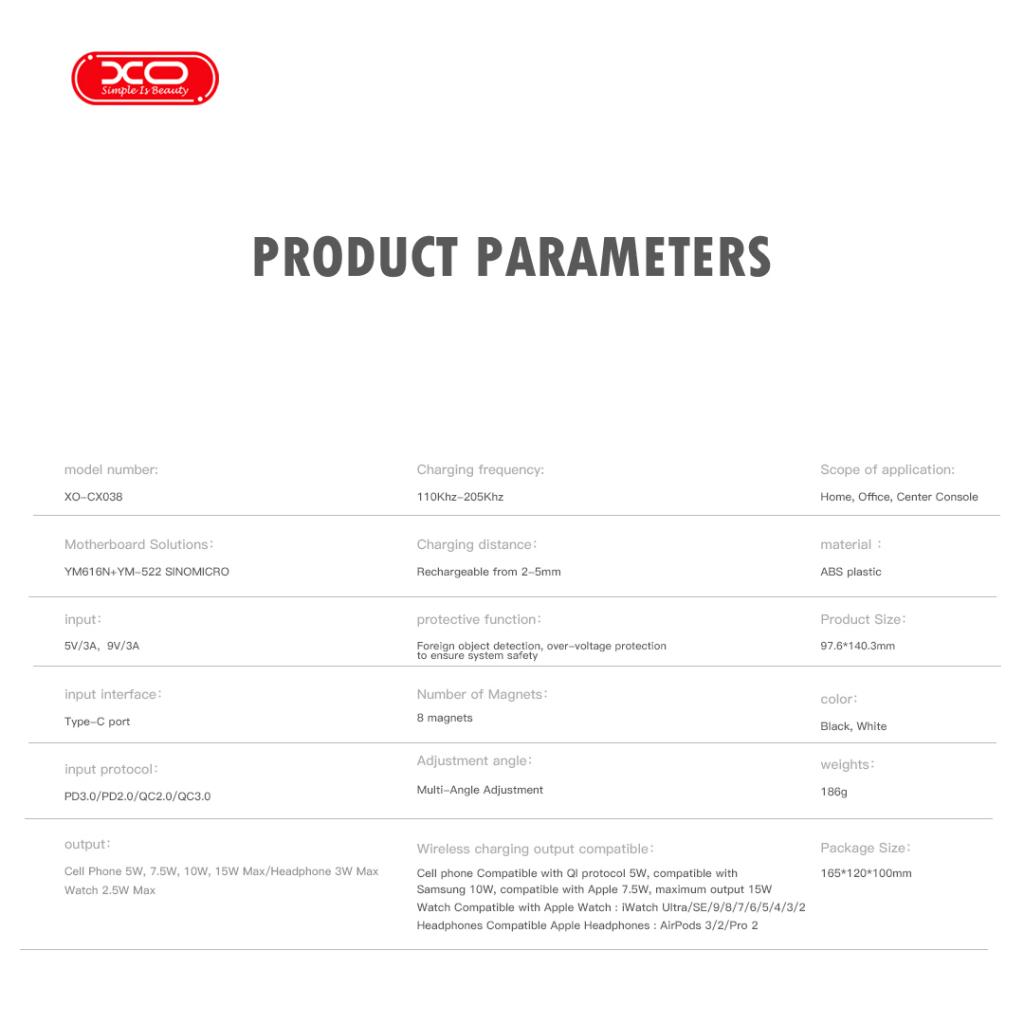 XO Холдер 15W 3в1 Wireless за бюро, черен - CX038