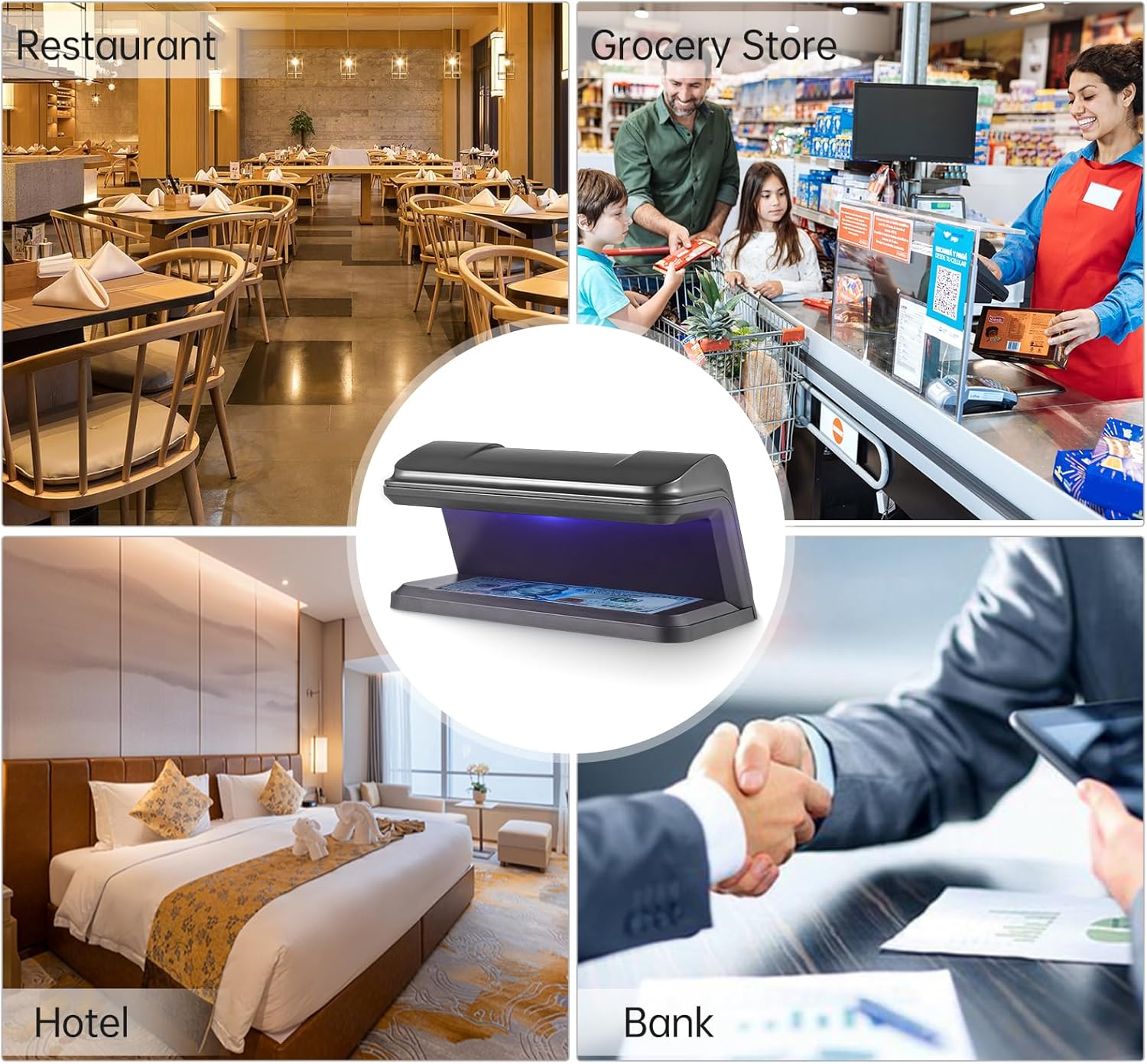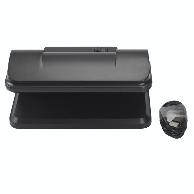 * Уредът ясно различава истински от фалшиви банкноти — при оригинална банкнота се виждат само специфични защитни елементи, докато при фалшива свети цялата повърхност.