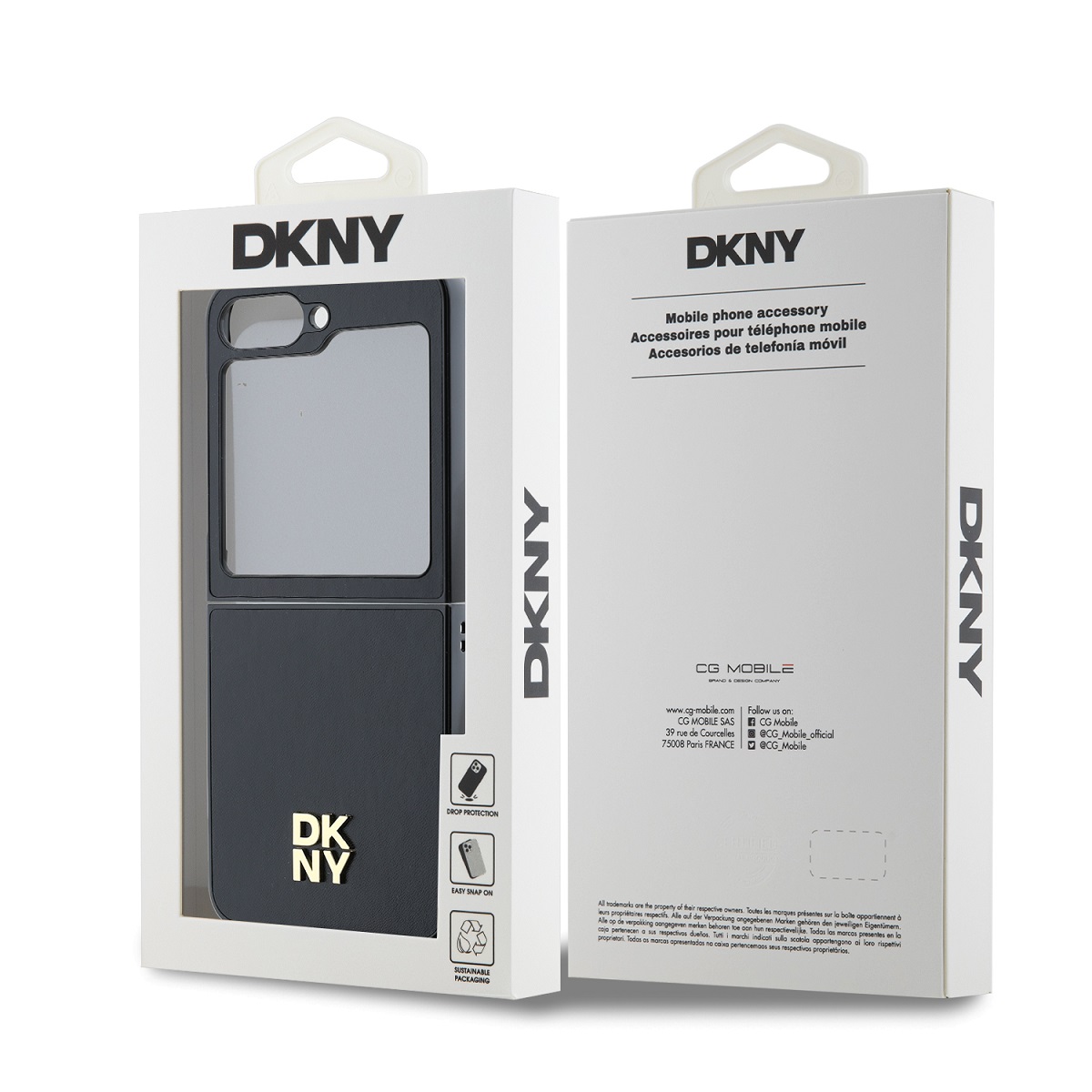 DKNY Калъф Samsung Z Flip 6/ 7 FE, PU Leather Stack Logo MagSafe, черен - DKHCZF6PSMCSLK