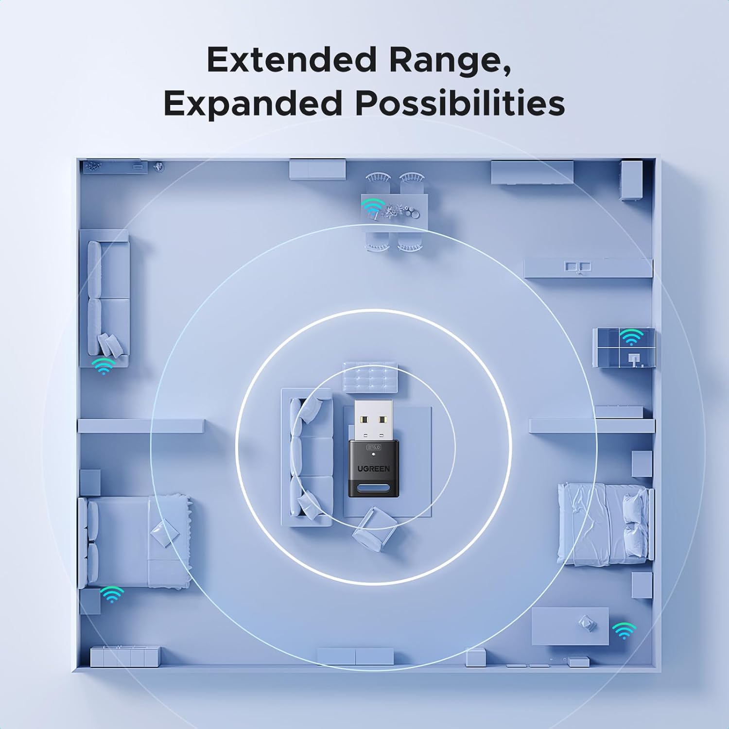 * USB Bluetooth адаптерът UGREEN CM748 / 75073е оборудван с най-новата технология Bluetooth 6.0 EDR, оптимизирайки проблемите със забавянето на предаването.