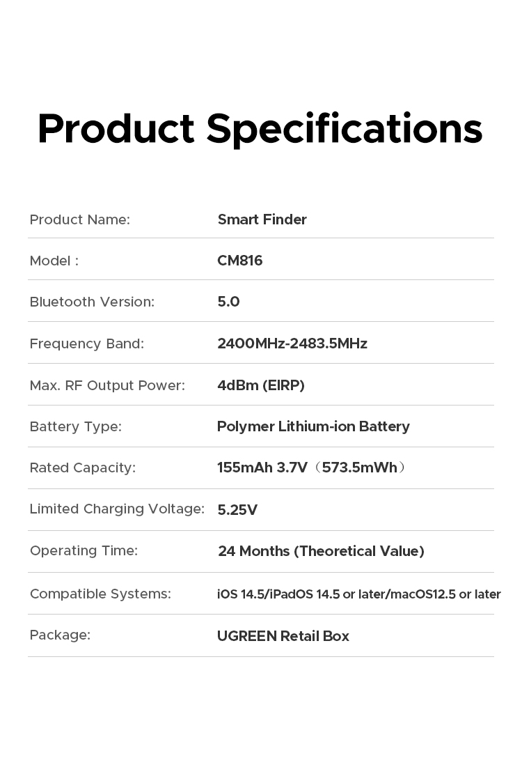 * Bluetooth локатор UGREEN CM816 / 45297 - проследява предмети в реално време и предотвратява загубата им.