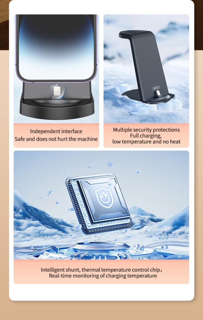 * Позволява едновременно зареждане на телефон, смартчасовник (напр. Apple Watch) и слушалки без кабели.