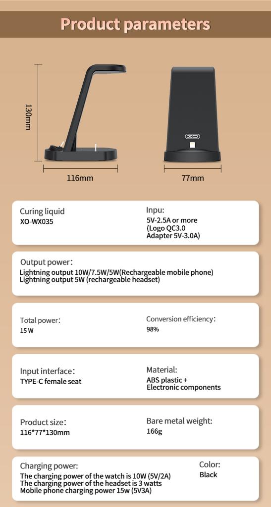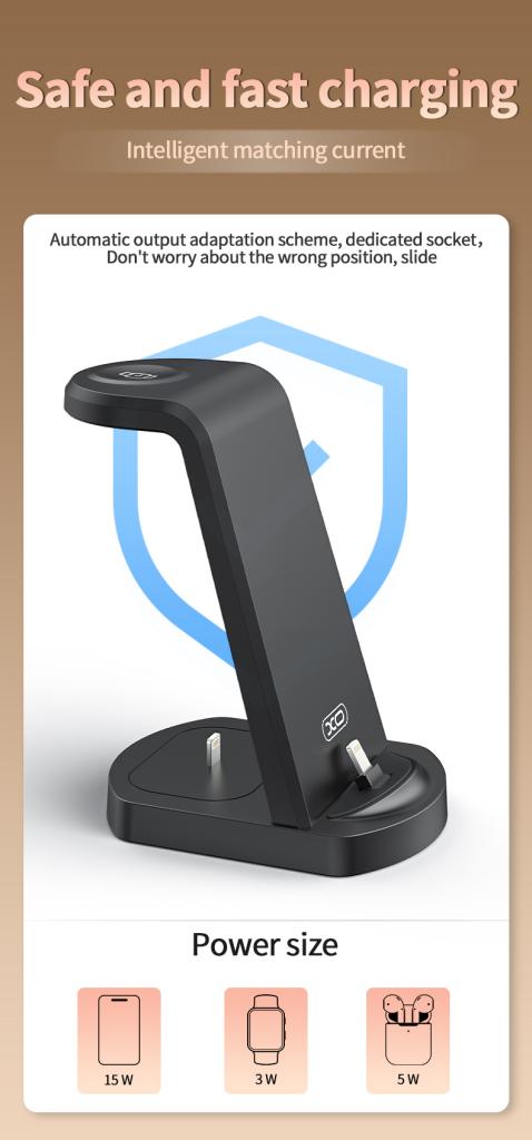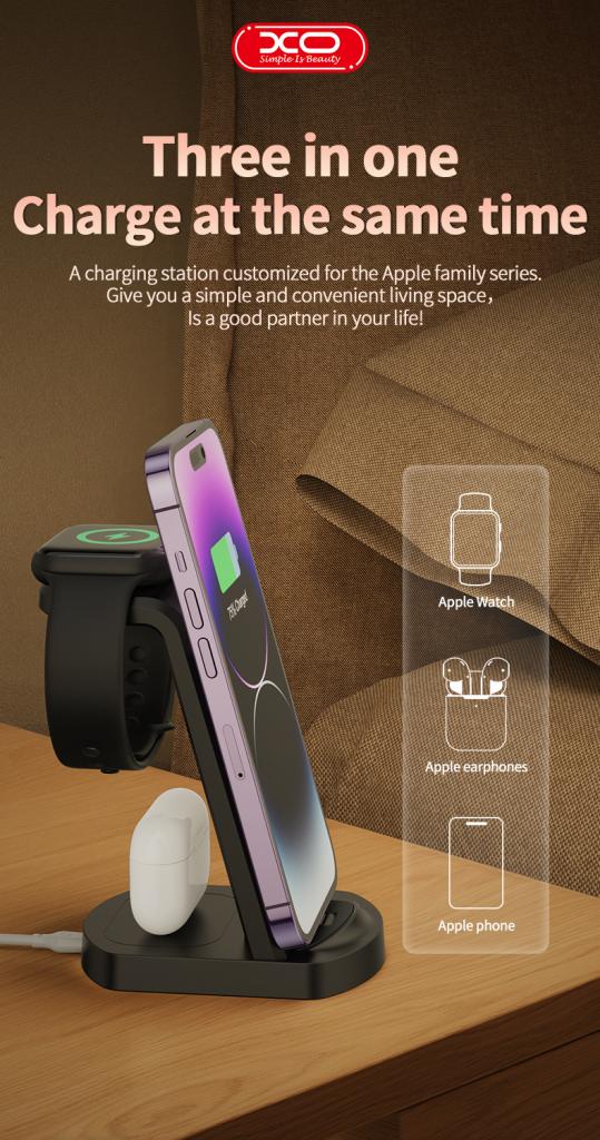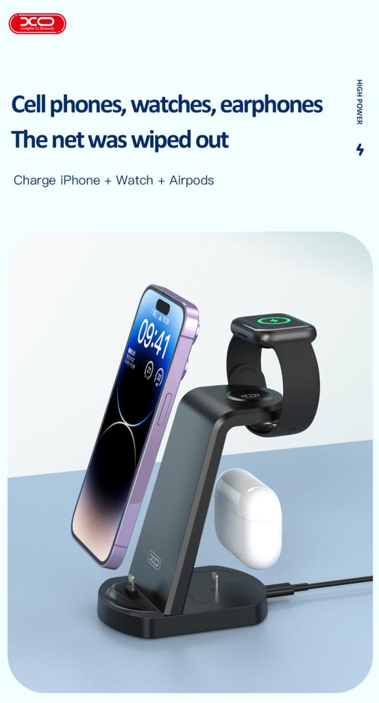 XO Wireless зарядно 15W 3 в 1, /черно/ - WX035