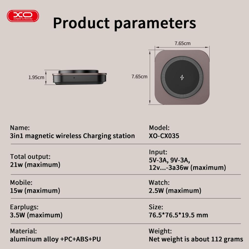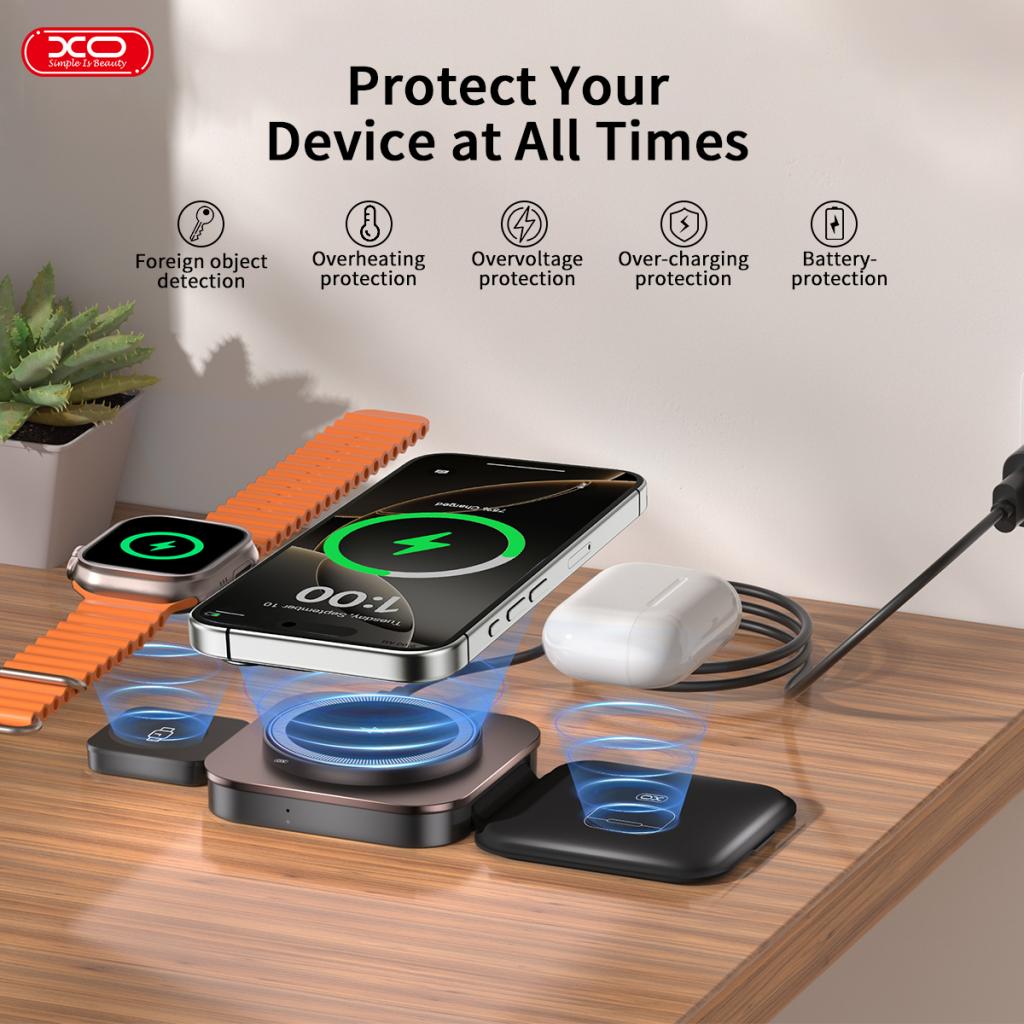 XO Wireless зарядно 15W 3 в 1, /черно/ - CX035