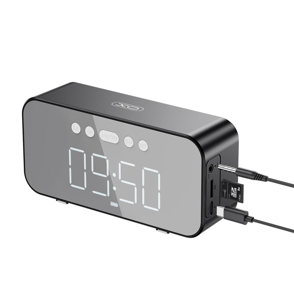 XO Тонколонка с час и радио, Mirror clock wireless /черен/ - F41