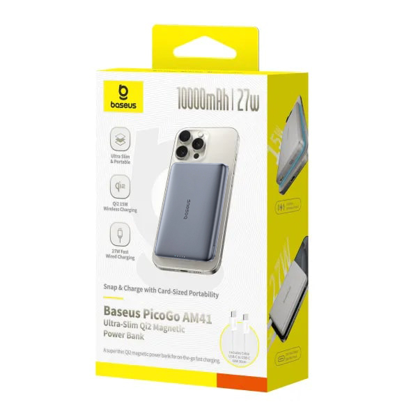 BASEUS Power Bank 10000 mAh 27W, PicoGo AM41 Ultra-slim Qi2 Magnetic /графит/ - E0027200