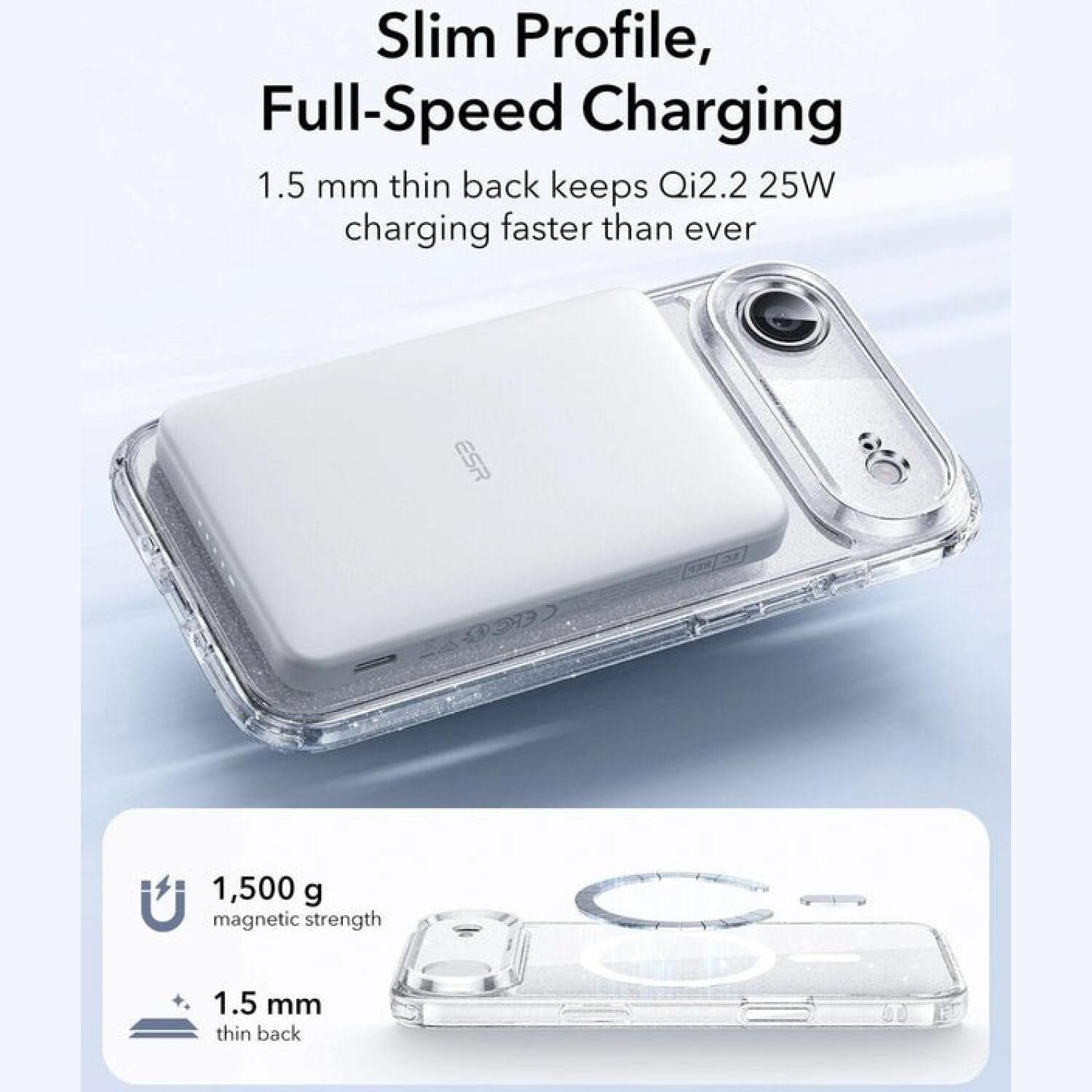 * Мощни вградени магнити с 1500g сила на задържане, които осигуряват сигурно прикрепяне към всички аксесоари в стил MagSafe и HaloLock.