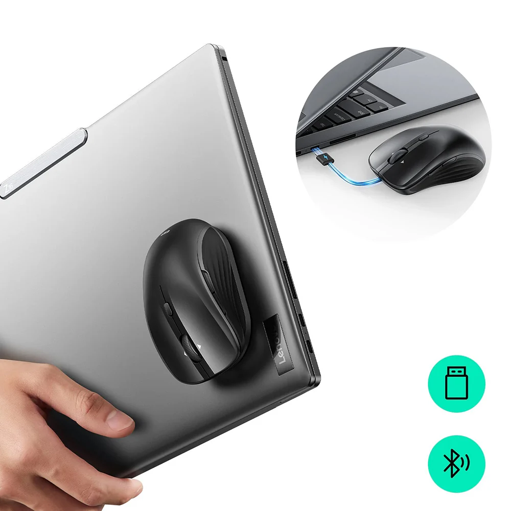 * В комплекта има магнитна основа (Snap-to-Carry), която Ви позволява да закрепите мишката към повърхността на лаптопа, за удобство при носене и без риск от падане.