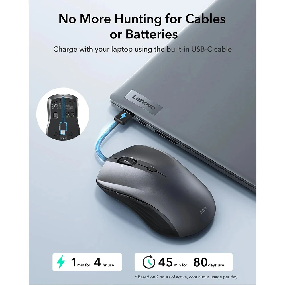 ESR Безжична мишка MagMouse, с вграден кабел Type-C /черен/