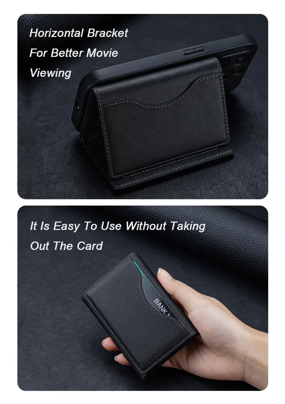 * Магнитен портфейл с вградени N52 магнити за по-силно и сигурно закрепване към смартфона.