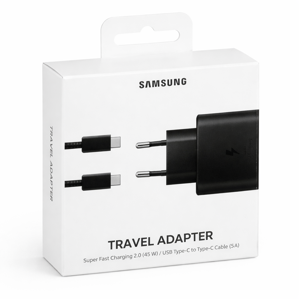 Samsung 220V 45W, USB-C, EP-TA845XBE + кабел Type-C-Type-C (опаковка), /черно/