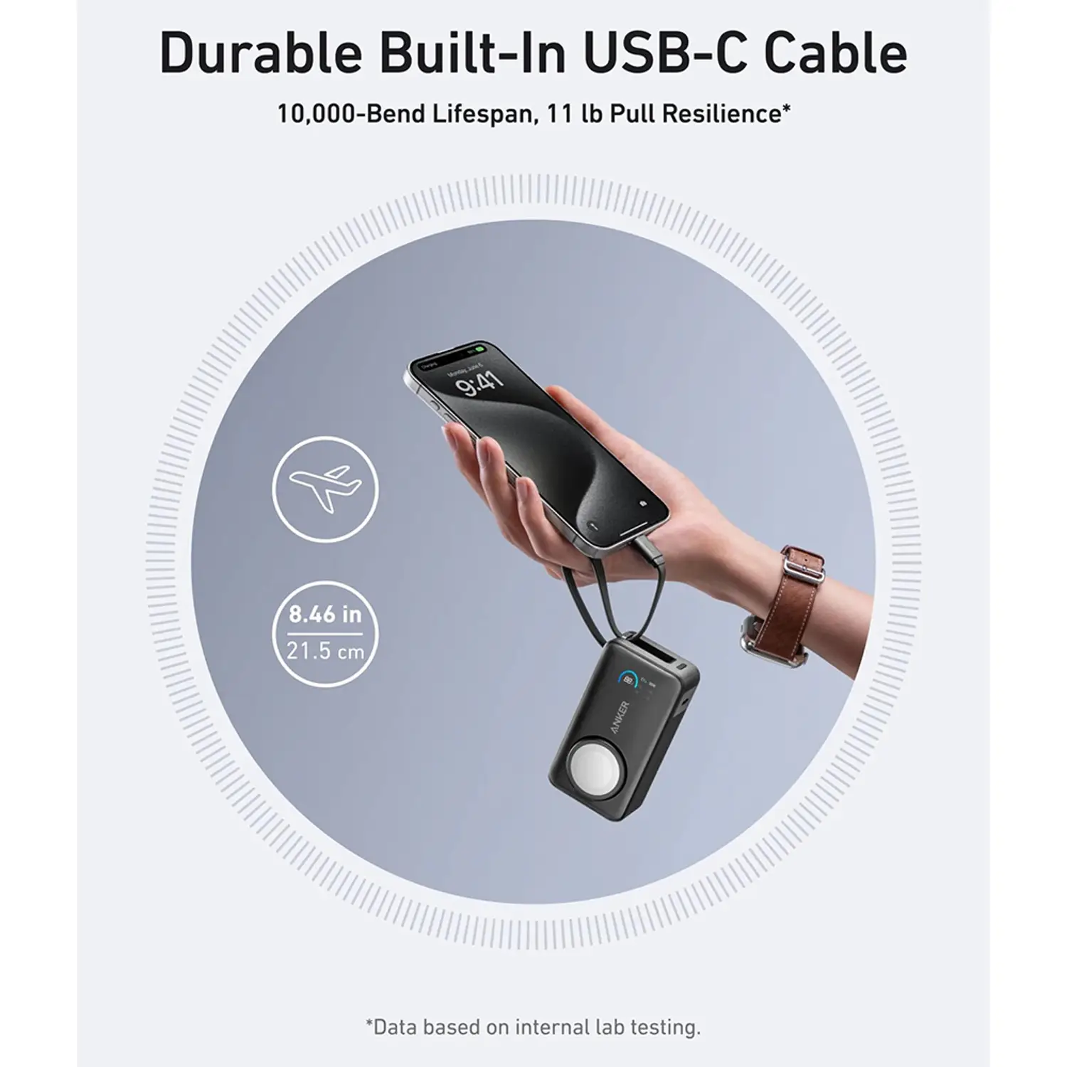 ANKER Power Bank 10000 mAh 35W + вграден кабел Type-C, MagGo Apple Watch Qi2 /черен/ - A1657H11