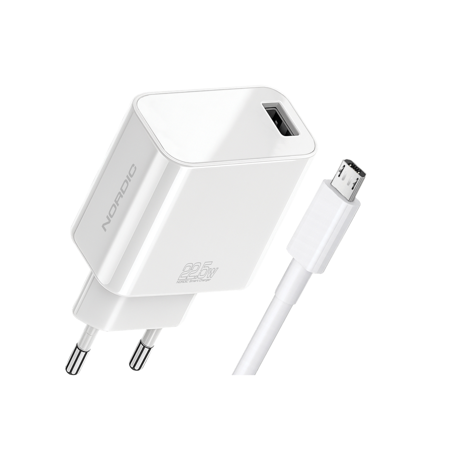 NORDIC 220V 22.5W, 1A + кабел USB-A - Micro /бял/ - NRDi-2250