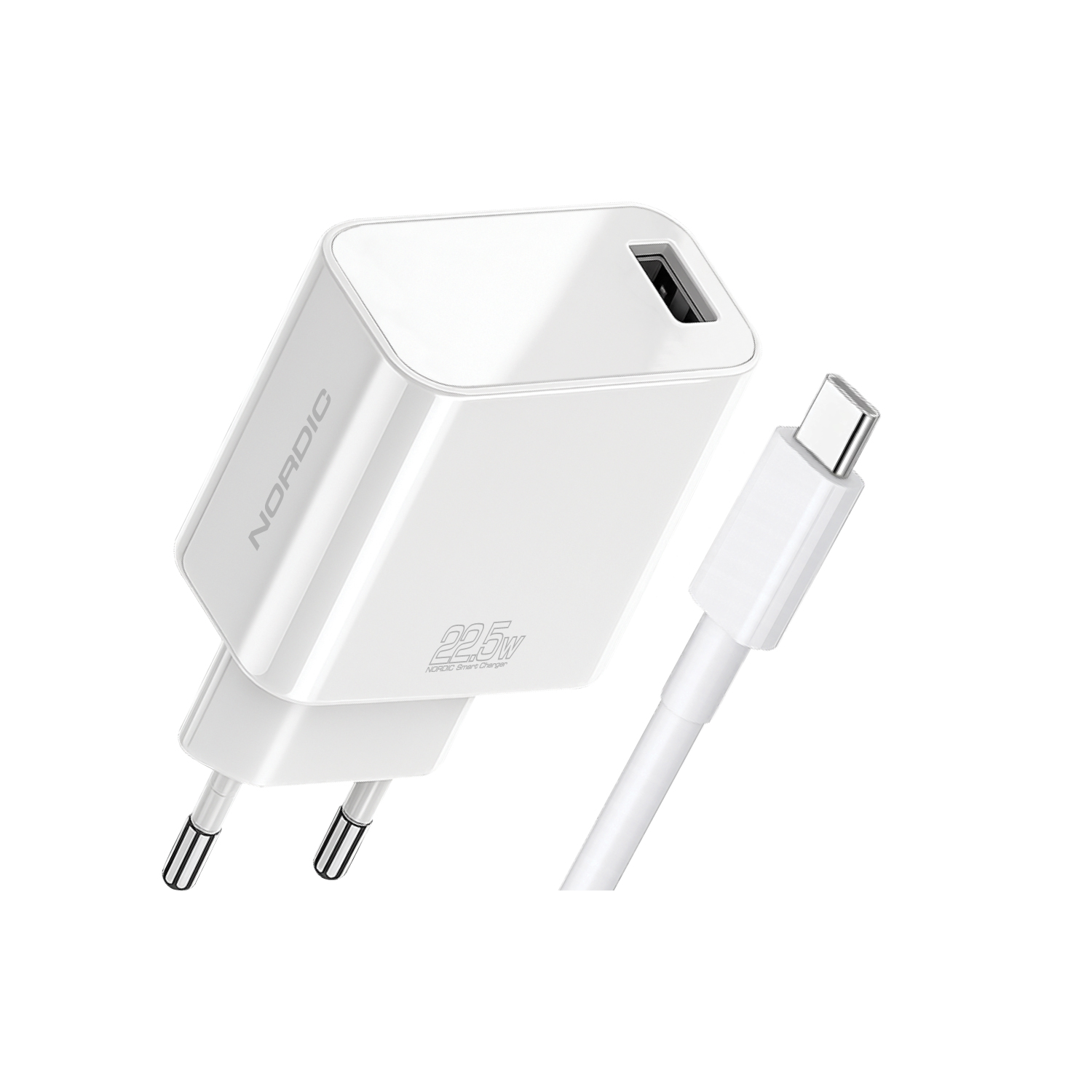NORDIC 220V 22.5W, 1A + кабел USB-A - Type-C /бял/ - NRDi-2250