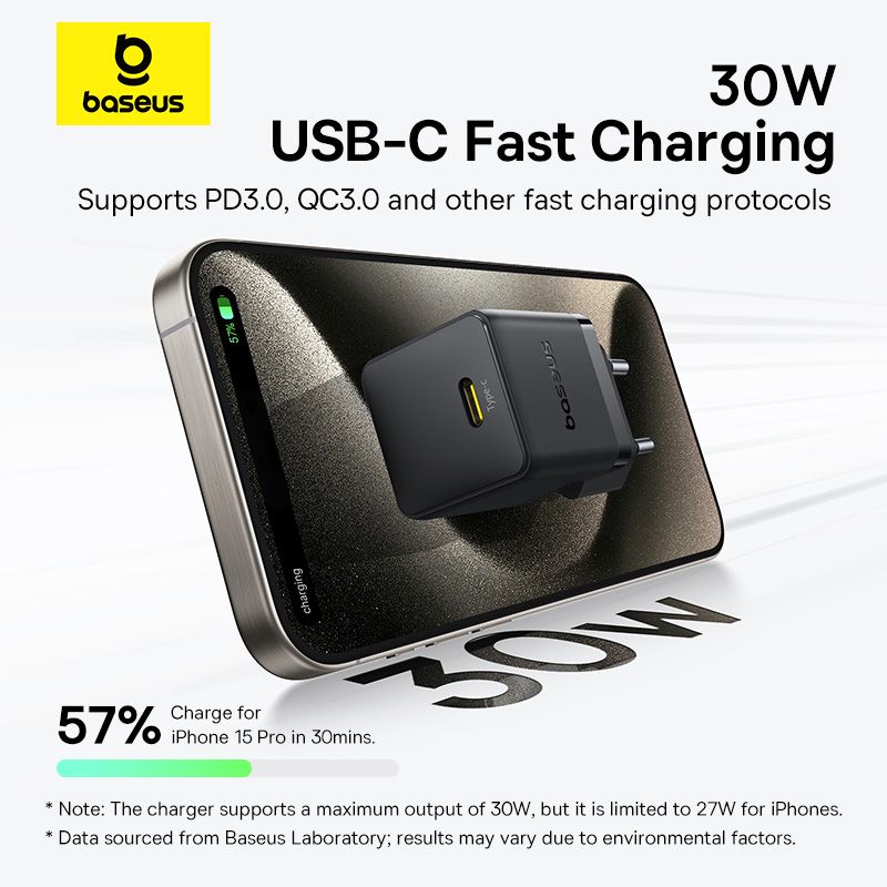 BASEUS 220V 30W, USB-C + кабел Type-C - Type-C, Palm fast /черен/ - P10111605113-01