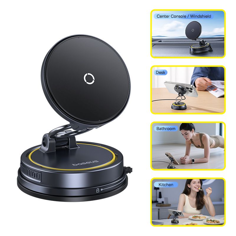 BASEUS Холдер Wireless 15W PrimeTrip VC2 Flex Pro Manual rotating с вакуум /черен/ - C0013F01