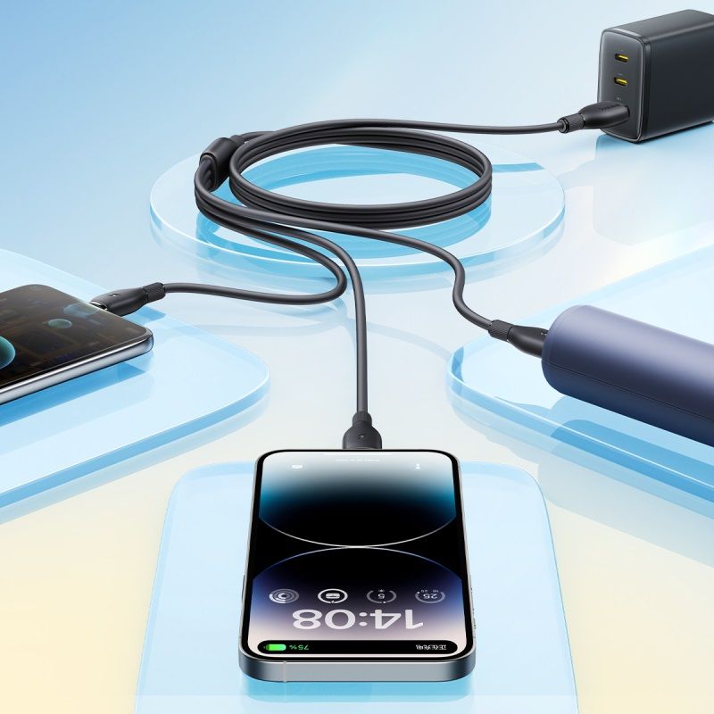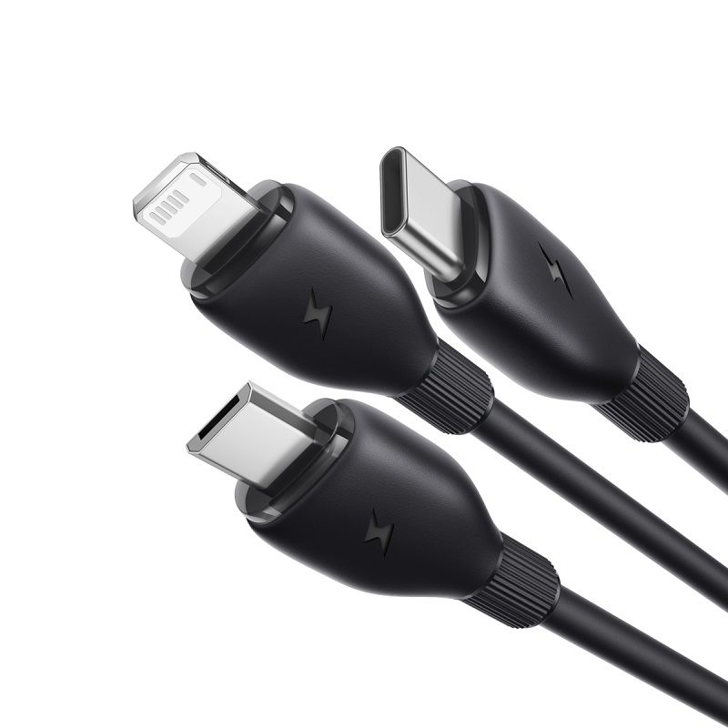 * 3-в-1 дизайн: Един кабел за Micro USB, Lightning и USB-C устройства.