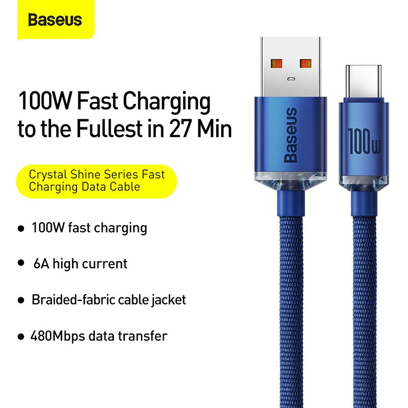 BASEUS Кабел USB-A - Type-C, 1.2m, 100W, Crystal Shine (CAJY000401) /черен/