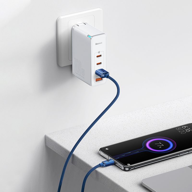 BASEUS Кабел USB-A - Type-C, 1.2m, 100W, Crystal Shine /син/ - CAJY000403