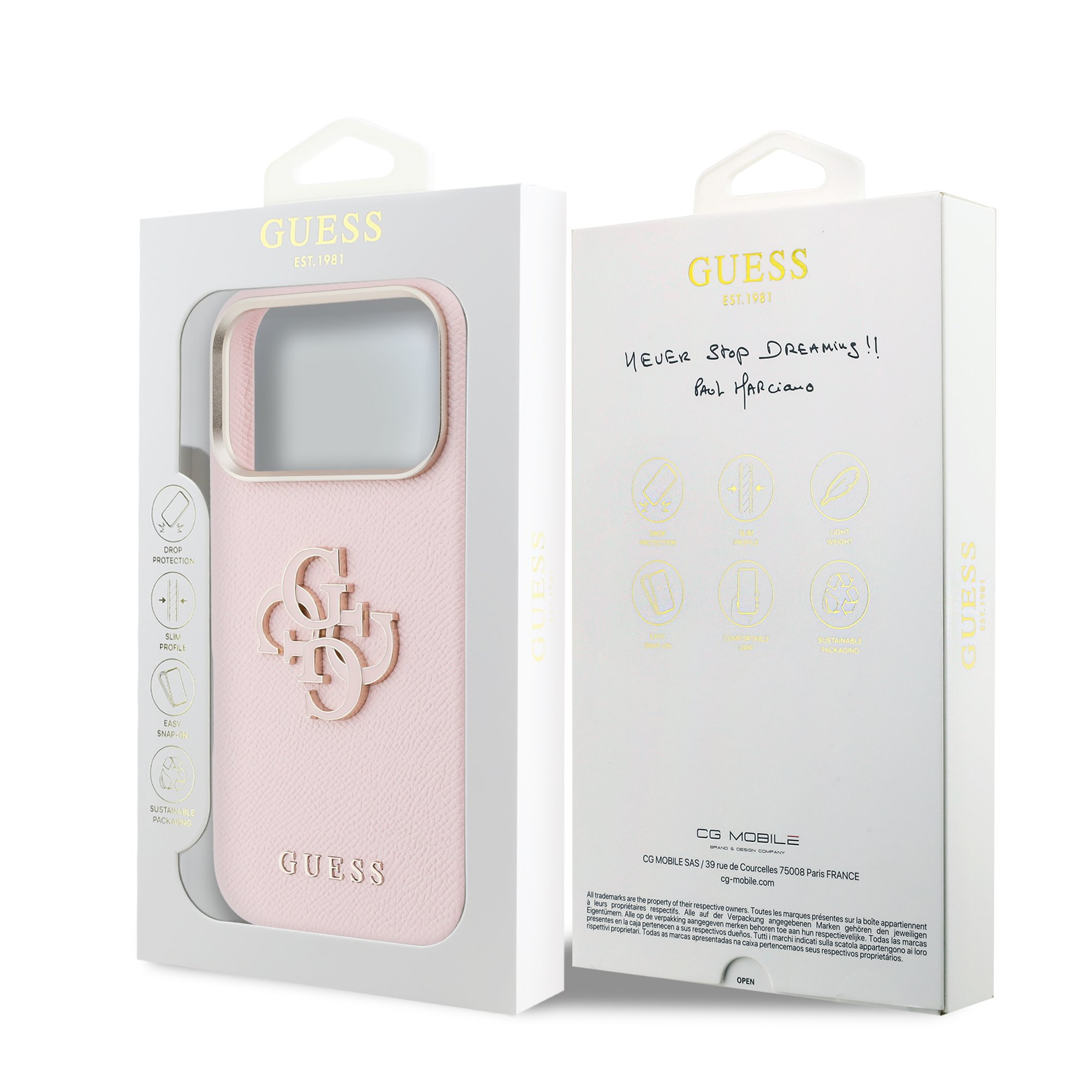 * Оригинален премиум калъф Guess PU 4G Resin Metal Logo.