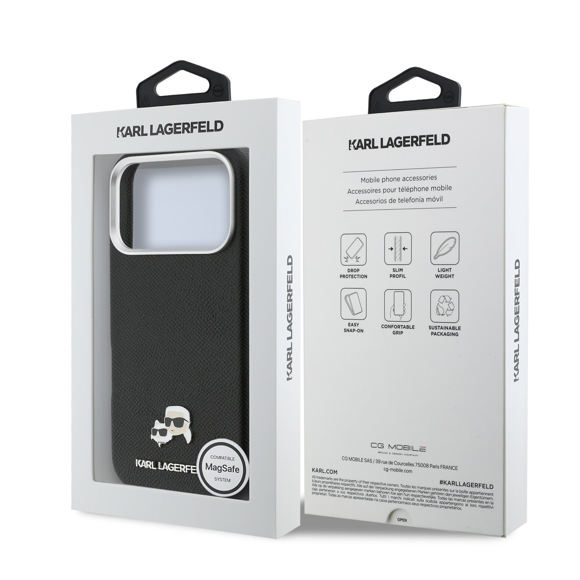 Karl Lagerfeld Калъф Apple iPhone 17 Pro Max, PU K/C Heads Pins MagSafe /черен/ - KLHMP17X6PFKCLK
